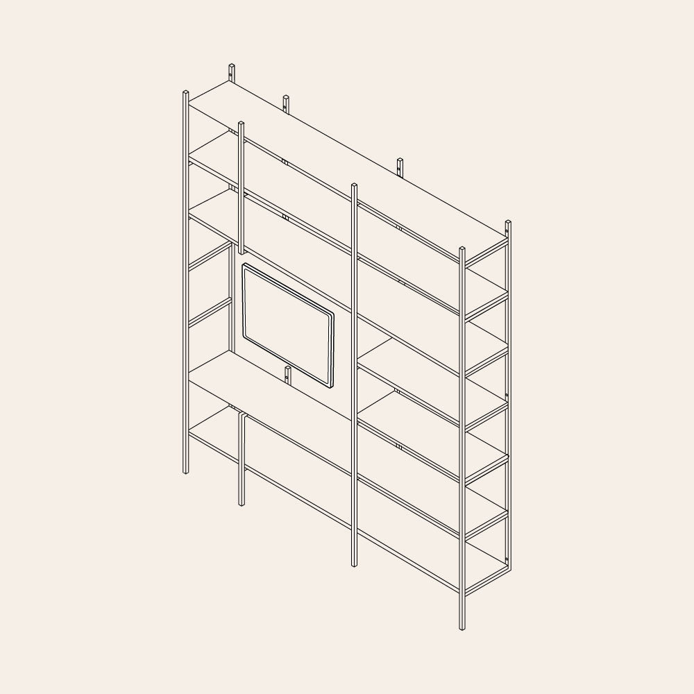 Klaras TV-Regal ist ein Bücherregal mit einer Öffnung für den Fernseher. Hier finden Bücher, Wohnaccessoires und Alltagsgegenstände ihren Platz, während sich der Fernseher ganz natürlich einfügt. Ein zeitloses TV-Regal für ein harmonisches und funktionales Wohnzimmer.