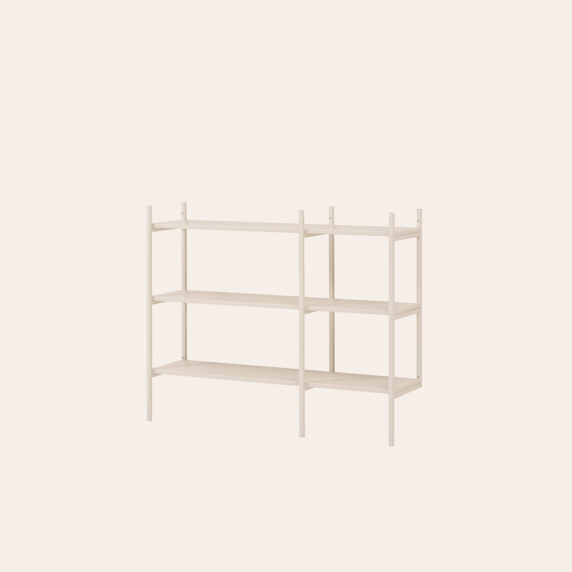 Kleines Bücherregal oder Sideboard in Off-White passt in jeden Raum Ihres Zuhauses. Die niedrige Höhe eignet sich perfekt für eine Lampe, ein Stillleben oder einen Stapel Kunstbücher. Dieses Regal ist 123 cm breit.