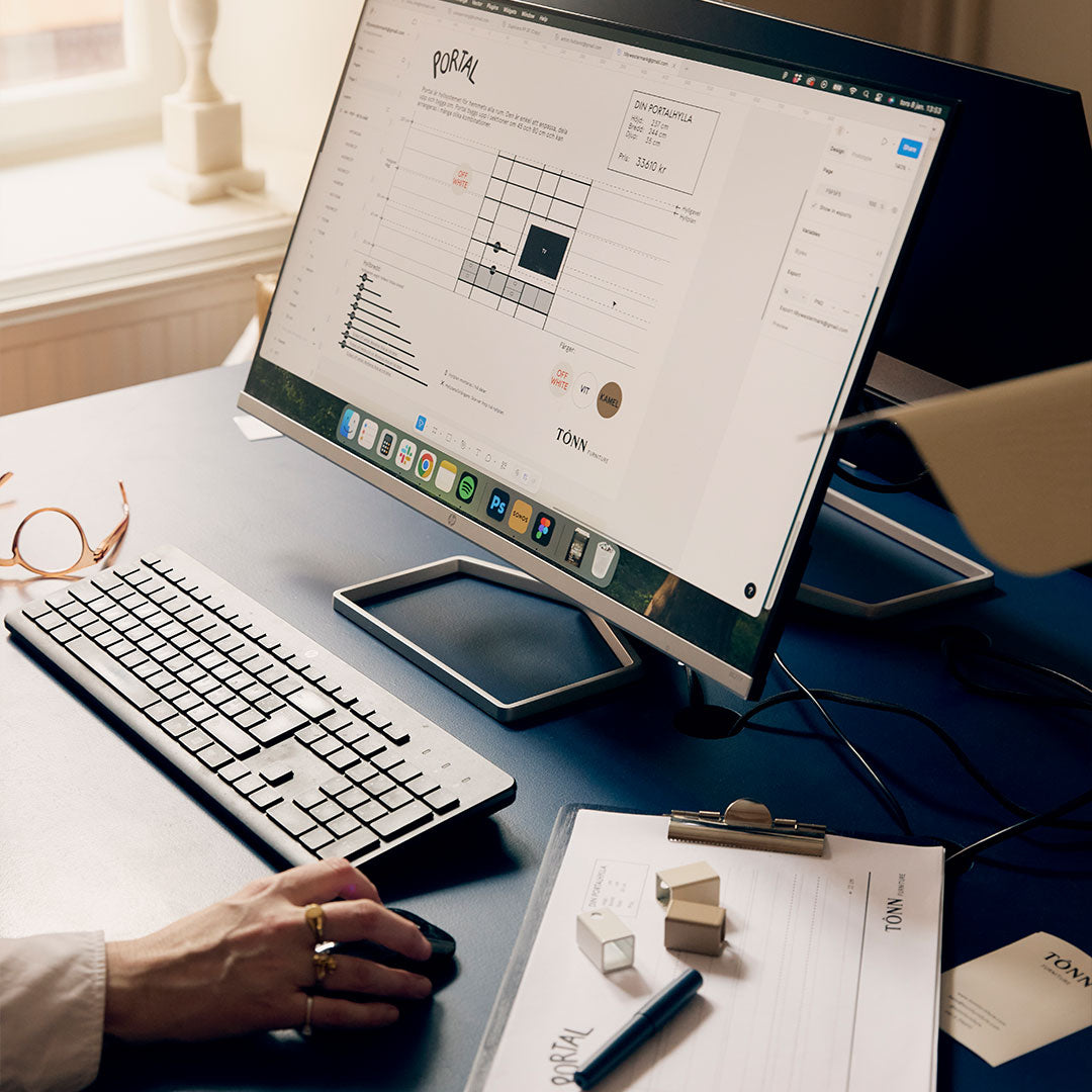 Starta Portal-planeraren och få en personlig skiss på din Portalhylla, helt anpassad efter ditt hem av våra designers. När du är nöjd med skissen skickar vi en varukorg redo att beställas. Tjänsten är helt gratis!