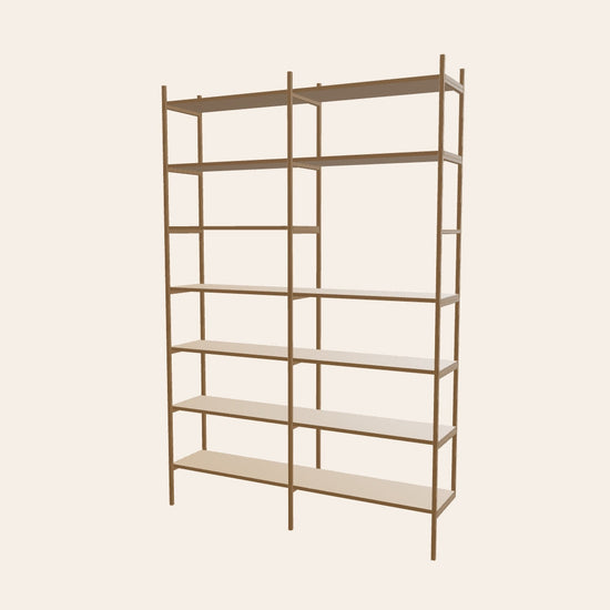 A perfect bookshelf for your living room in the color camel. In the open sections you can fit a painting or a large lamp. This combination is 158 cm wide.
