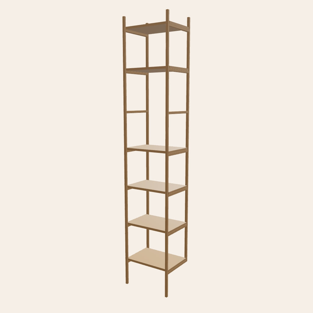 A perfect bookshelf for your living room in the color camel. In the open sections you can fit a painting or a large lamp. This combination is 45 cm wide.