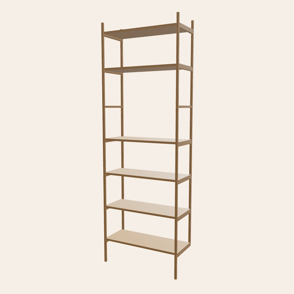 A perfect bookshelf for your living room in the color camel. In the open sections you can fit a painting or a large lamp. This combination is 80 cm wide.