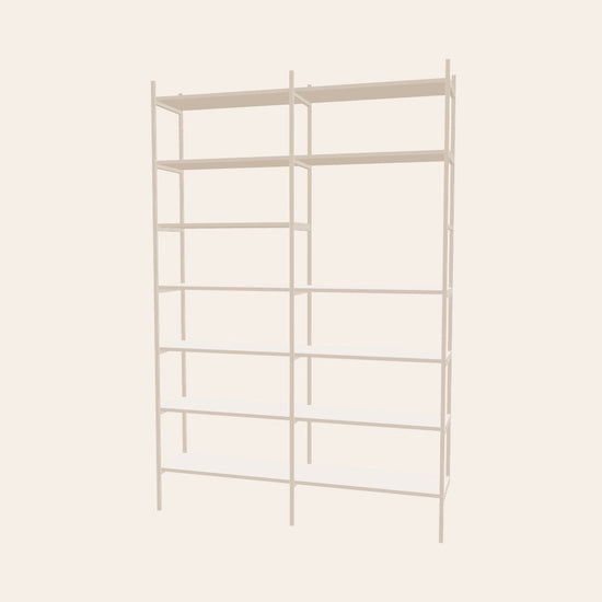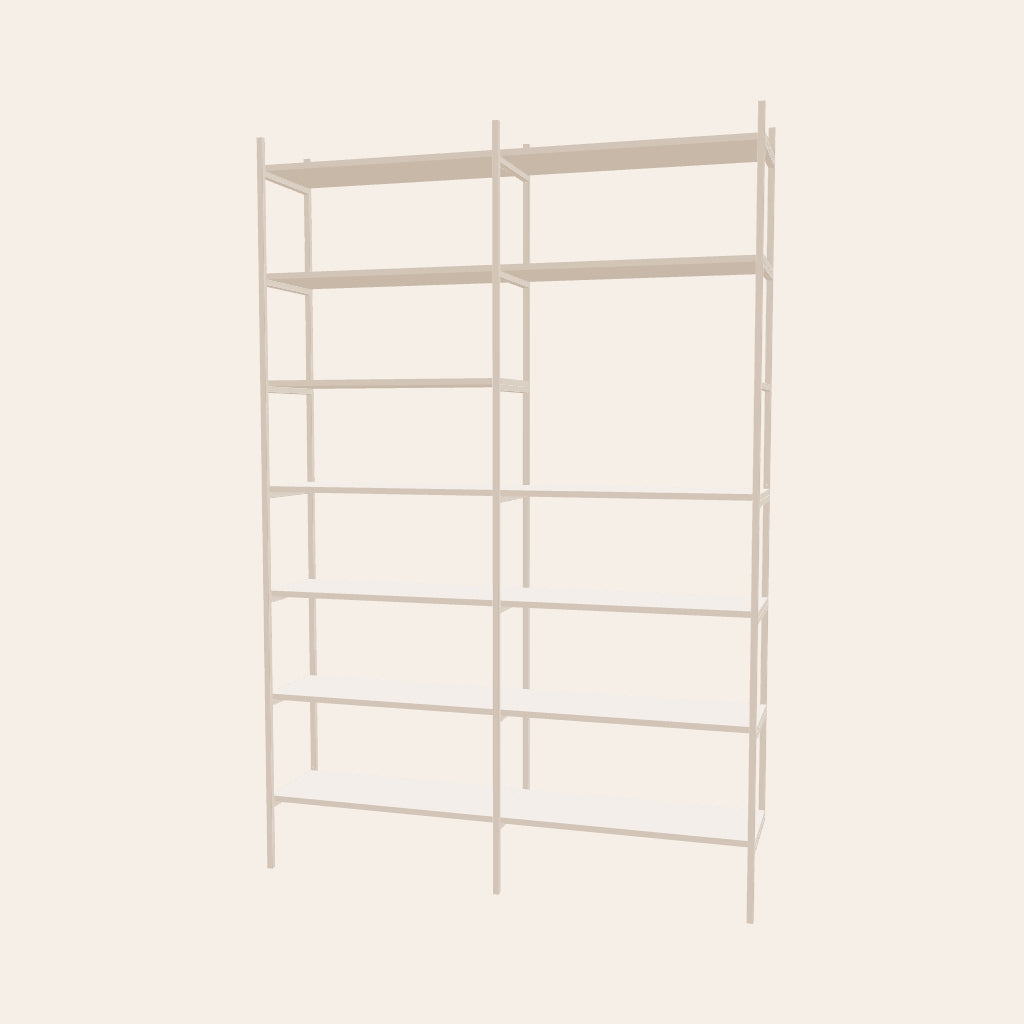A perfect bookshelf for your living room in the color off-white. In the open sections you can fit a painting or a large lamp. This combination is 158 cm wide.