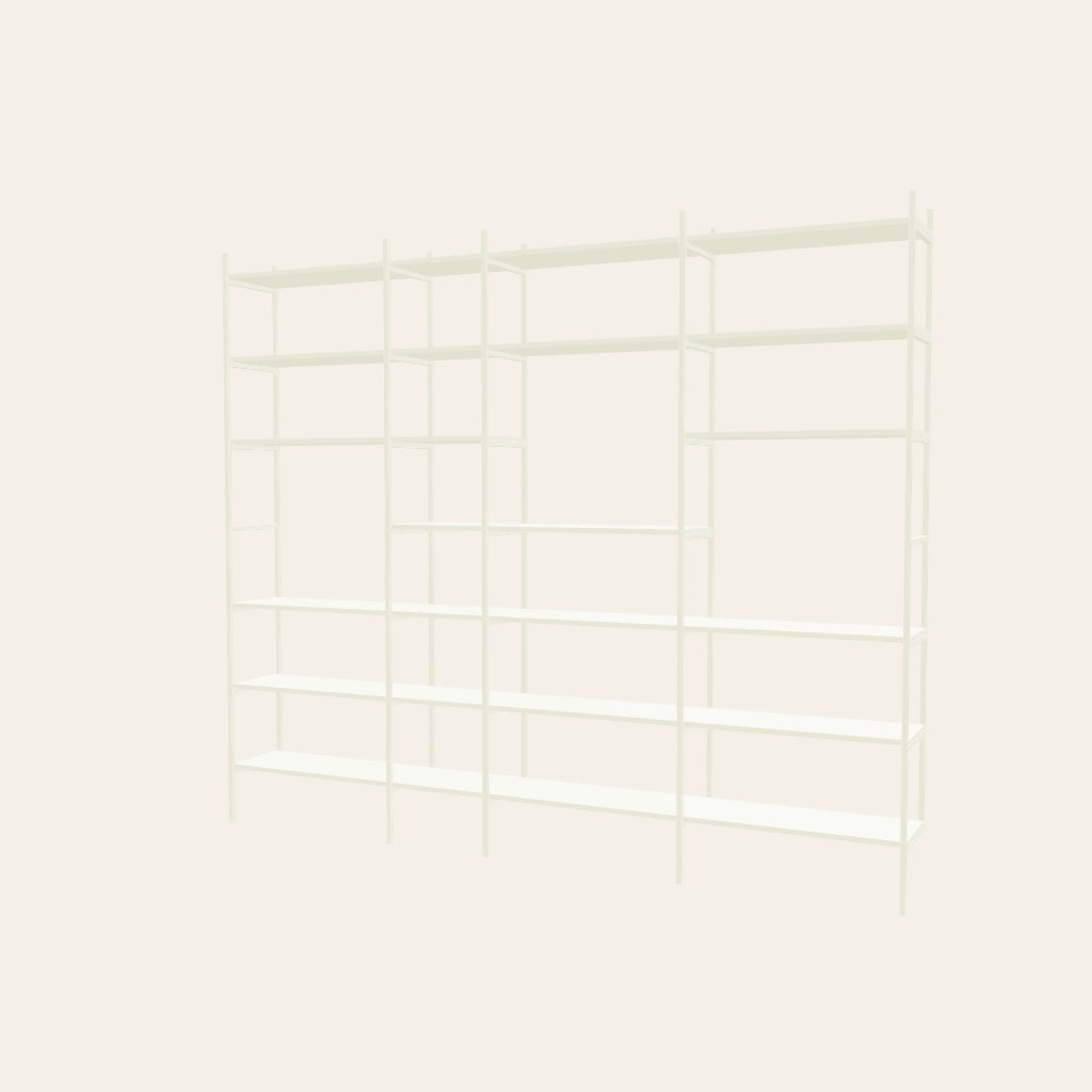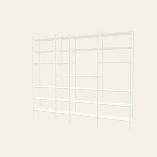 A perfect bookshelf for your living room in the color white. In the open sections you can fit a painting or a large lamp. This combination is 279 cm wide.