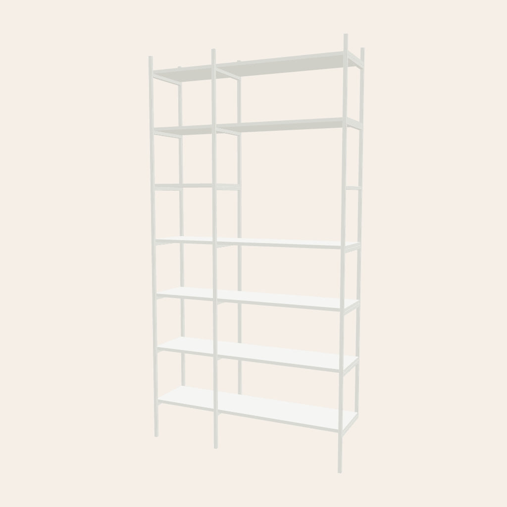 A perfect bookshelf for your living room in the color white. In the open sections you can fit a painting or a large lamp. This combination is 123 cm wide.