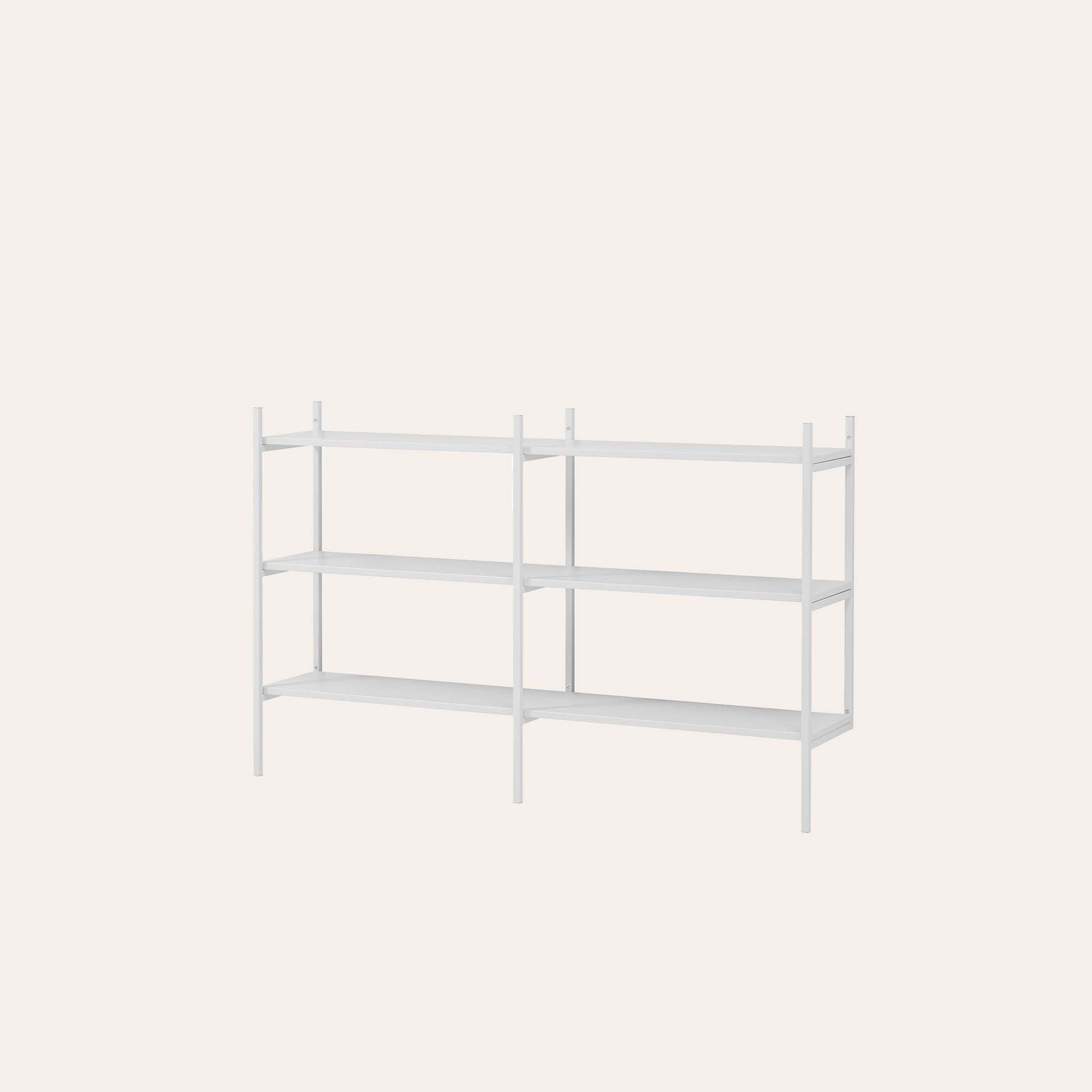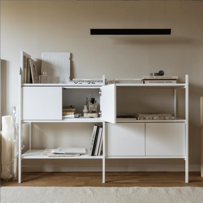 Small bookshelf or sideboard in white – fits in any room of your home. The low height makes it perfect for a lamp, a few decorative objects, or a stack of art books. This combination is 158 cm wide.