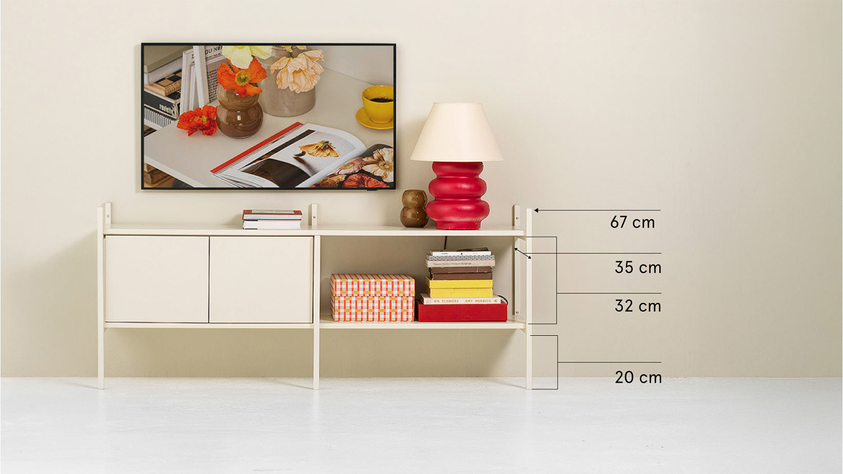 Excellent TV stand in camel combining function and style. Create space for both your TV and practical storage. A flexible solution that elevates your living room and fits beautifully in a wide range of homes. This combination is 158 cm wide.