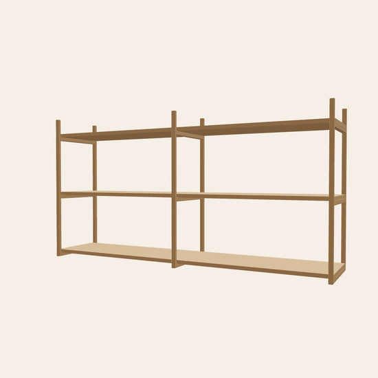 Wall-mounted open shelf in camel, perfect for the kitchen, living room or kids’ room. Add a clothing rod to hang everything from kitchen utensils to clothes – a playful solution for practical storage. This combination is 158 cm wide.