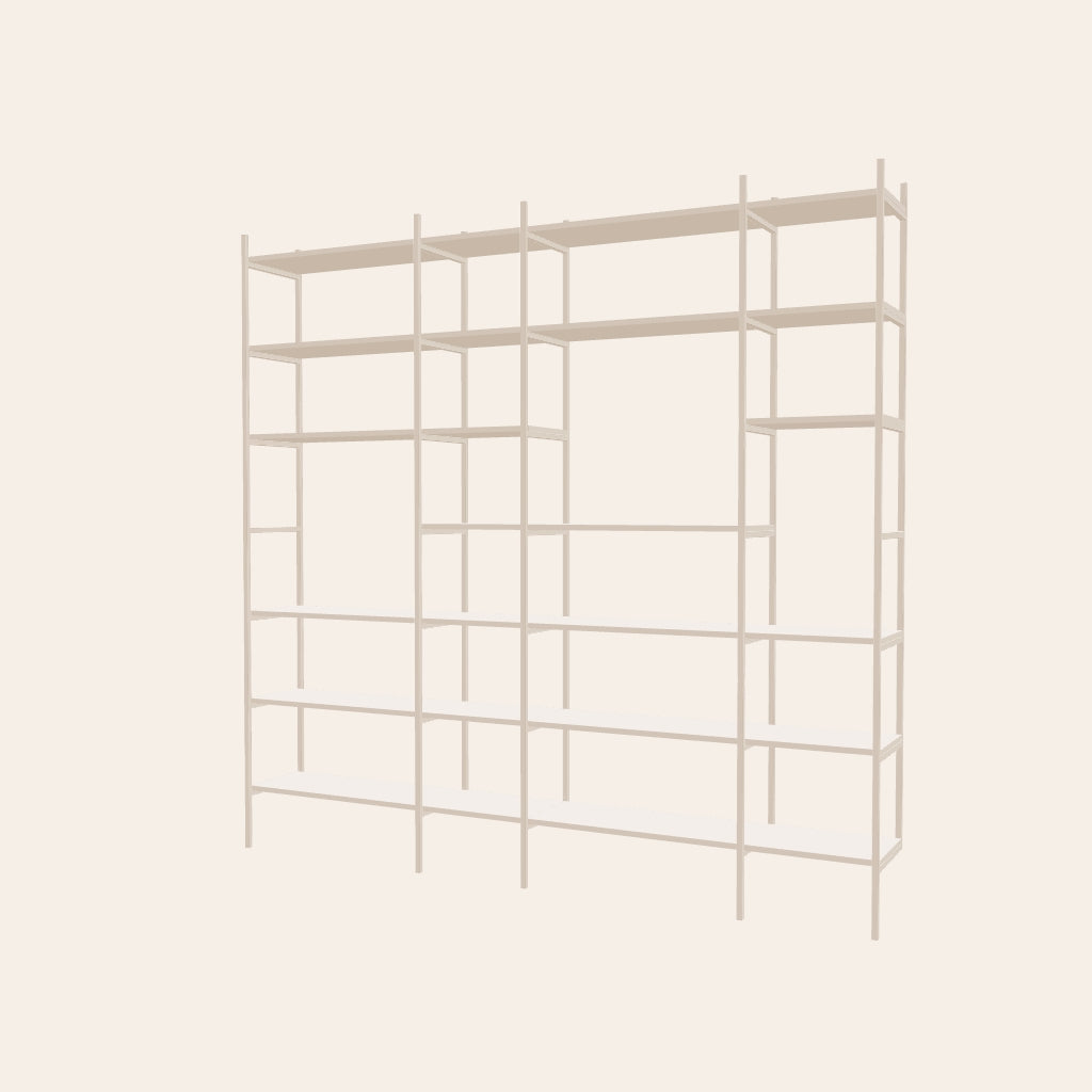En perfekt bokhylla för ditt vardagsrum i färgen off-white. I de öppna partierna får du plats med en tavla eller en större lampa. Denna kombination är 244 cm bred.