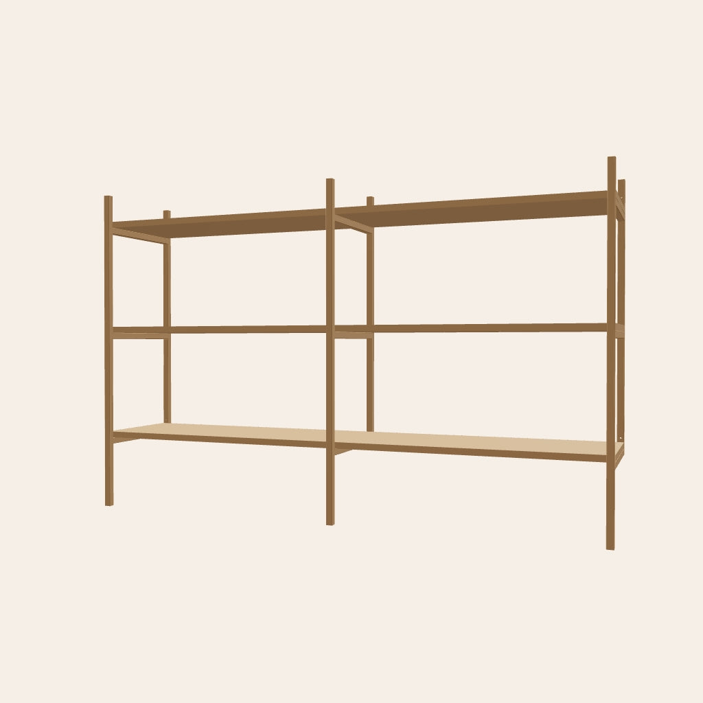 En perfekt bokhylla för ditt vardagsrum i färgen kamel. I de öppna partierna får du plats med en tavla eller en större lampa. Denna kombination är 158 cm bred.