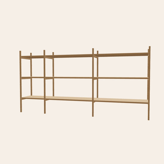 En perfekt bokhylla för ditt vardagsrum i färgen kamel. I de öppna partierna får du plats med en tavla eller en större lampa. Denna kombination är 201 cm bred.