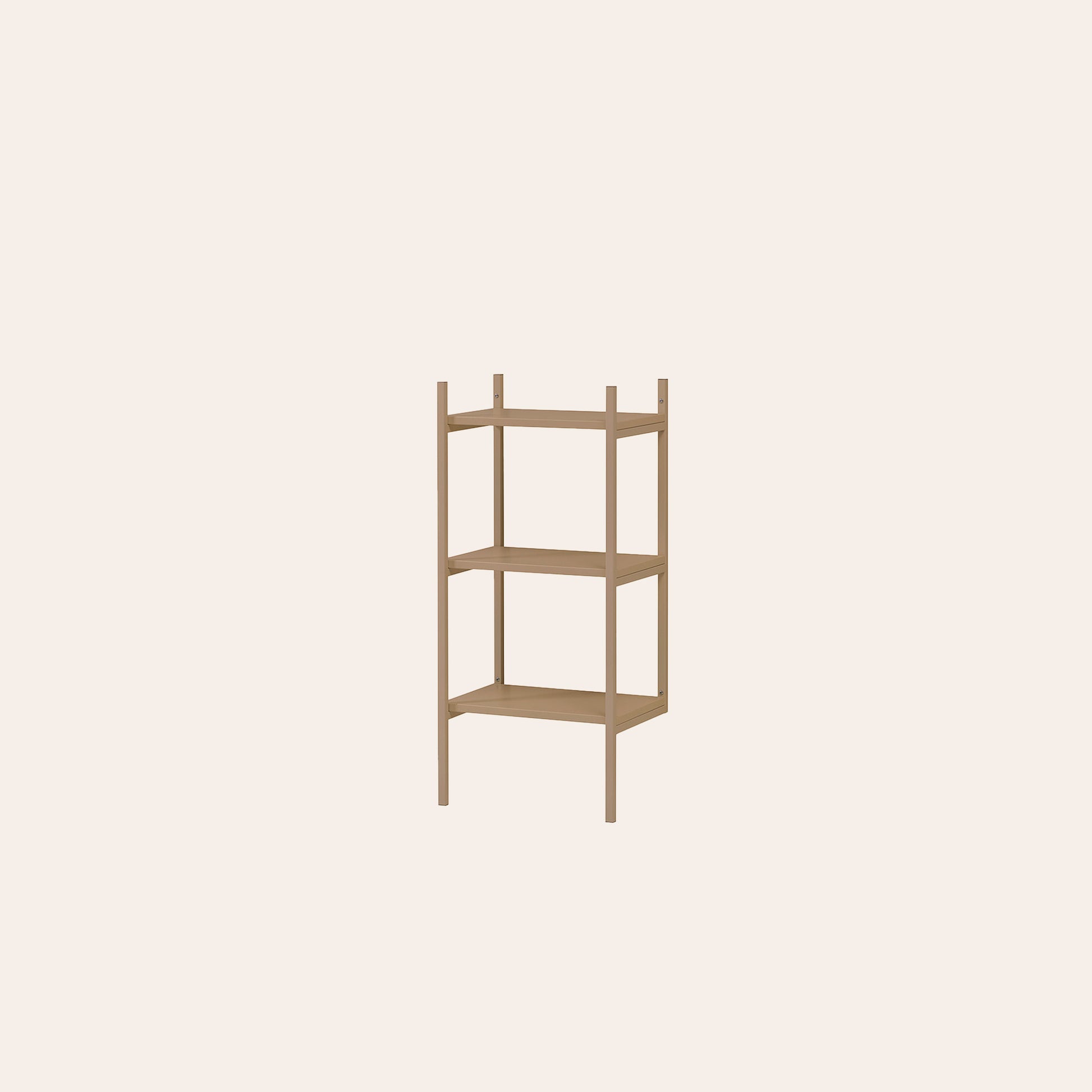 En perfekt bokhylla för ditt vardagsrum i färgen kamel. I de öppna partierna får du plats med en tavla eller en större lampa. Denna kombination är 45 cm bred.
