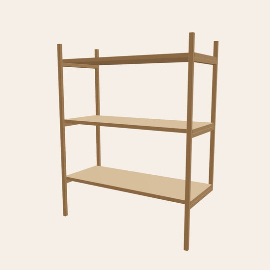 En perfekt bokhylla för ditt vardagsrum i färgen kamel. I de öppna partierna får du plats med en tavla eller en större lampa. Denna kombination är 80 cm bred.