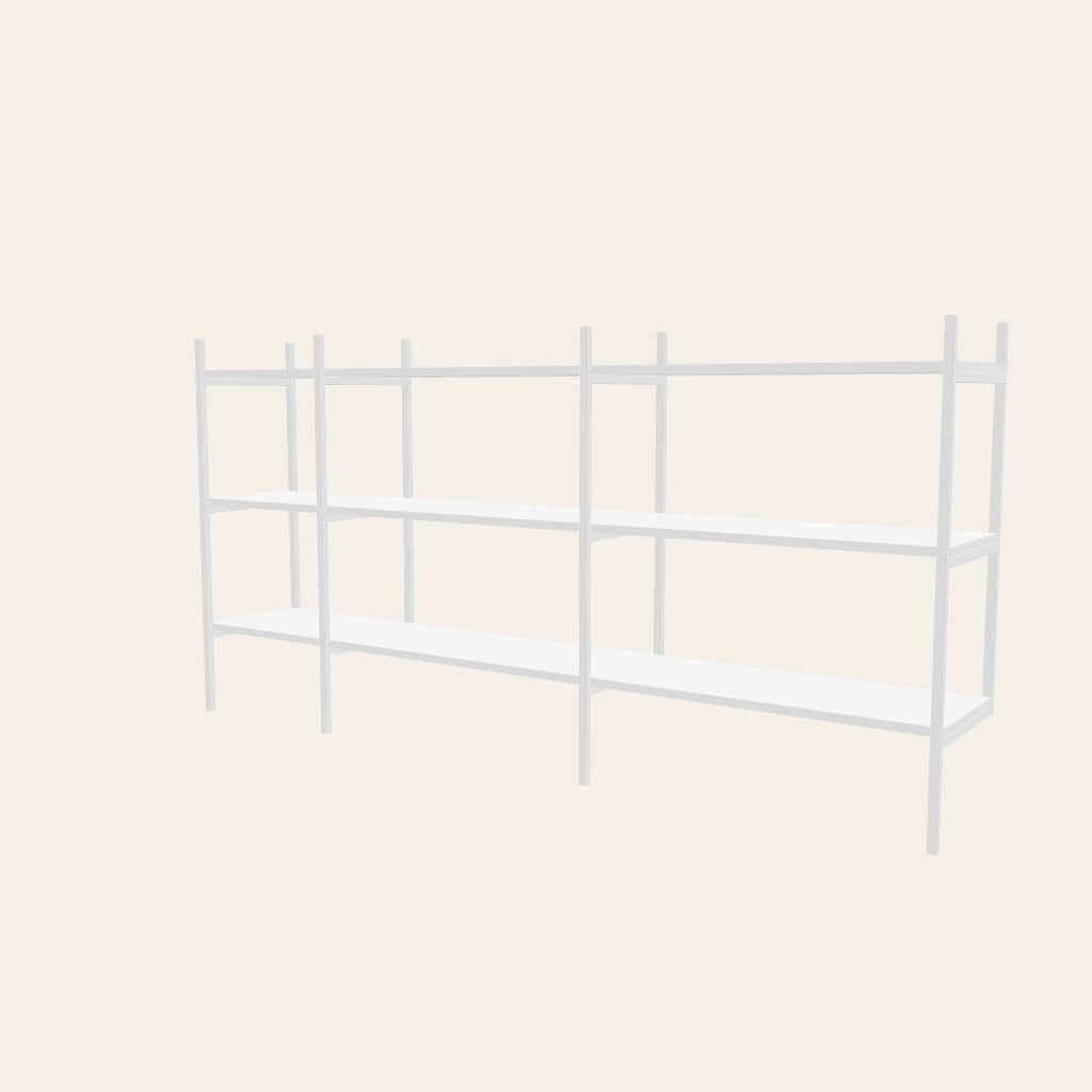 𑇐 Låga hyllgavlar monteras i väggen med två skruvar