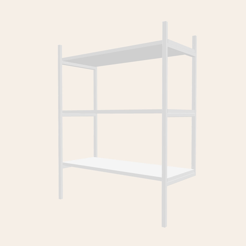 𑇐 Låga hyllgavlar monteras i väggen med två skruvar
