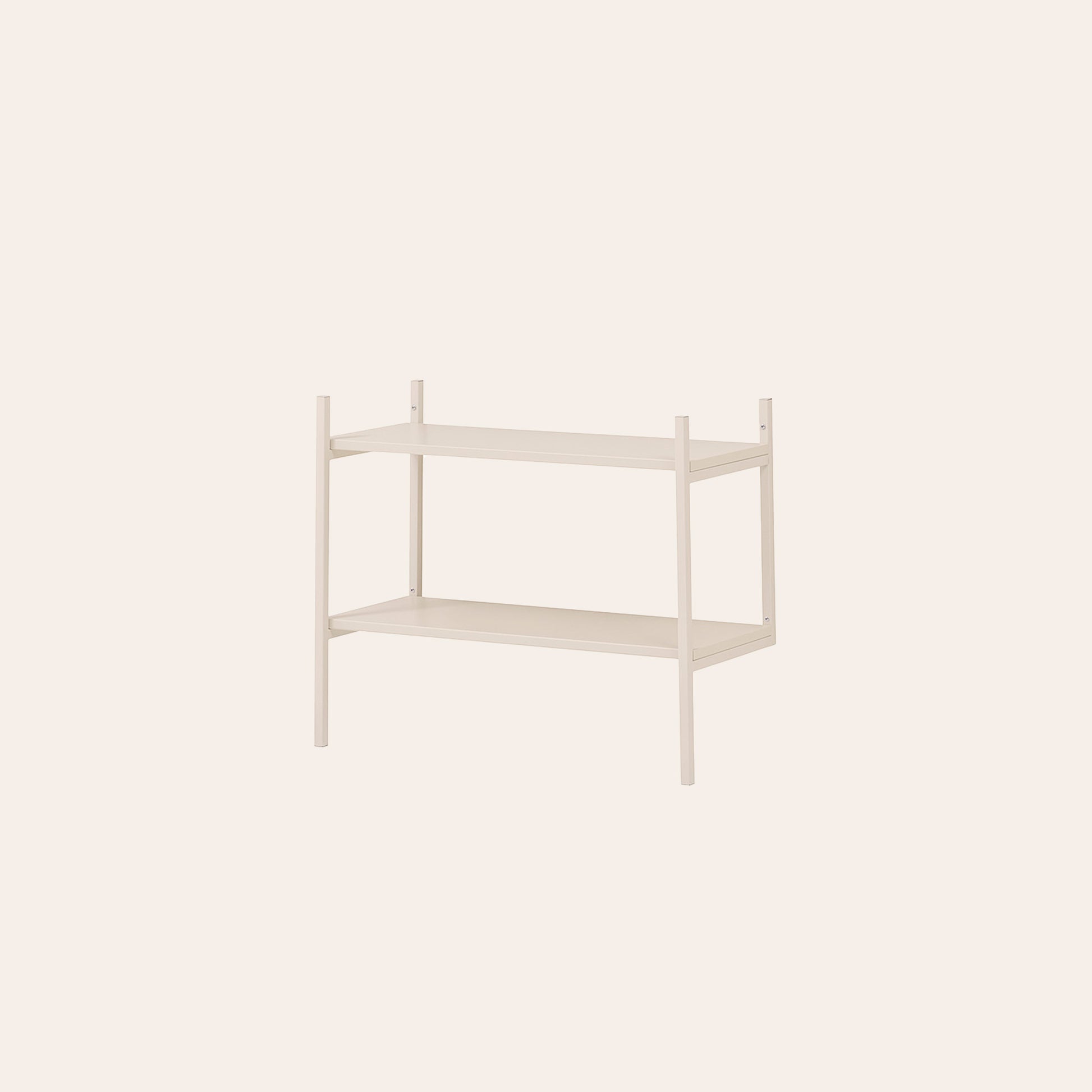 𑇐 Låga hyllgavlar monteras i väggen med två skruvar