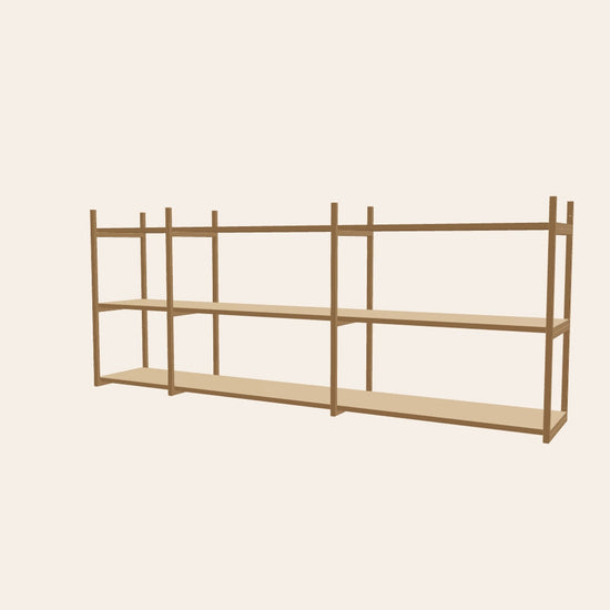 Vägghängd öppen hylla i färgen kamel, perfekt för kök, vardagsrum eller barnrum. Komplettera med en klädstång för att hänga upp allt från köksredskap till kläder, en lekfull lösning för praktisk förvaring. Denna kombination är 201 cm bred.