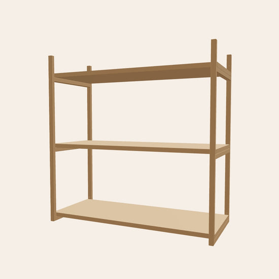 Vägghängd öppen hylla i färgen kamel, perfekt för kök, vardagsrum eller barnrum. Komplettera med en klädstång för att hänga upp allt från köksredskap till kläder, en lekfull lösning för praktisk förvaring. Denna kombination är 80 cm bred.