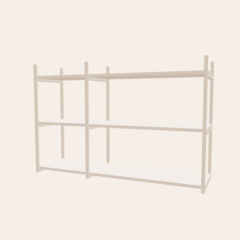 Vägghängd öppen hylla i färgen off-white, perfekt för kök, vardagsrum eller barnrum. Komplettera med en klädstång för att hänga upp allt från köksredskap till kläder, en lekfull lösning för praktisk förvaring. Denna kombination är 123 cm bred.