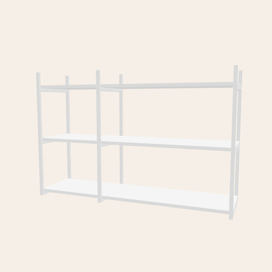 Vägghängd öppen hylla i färgen vit, perfekt för kök, vardagsrum eller barnrum. Komplettera med en klädstång för att hänga upp allt från köksredskap till kläder, en lekfull lösning för praktisk förvaring. Denna kombination är 123 cm bred.